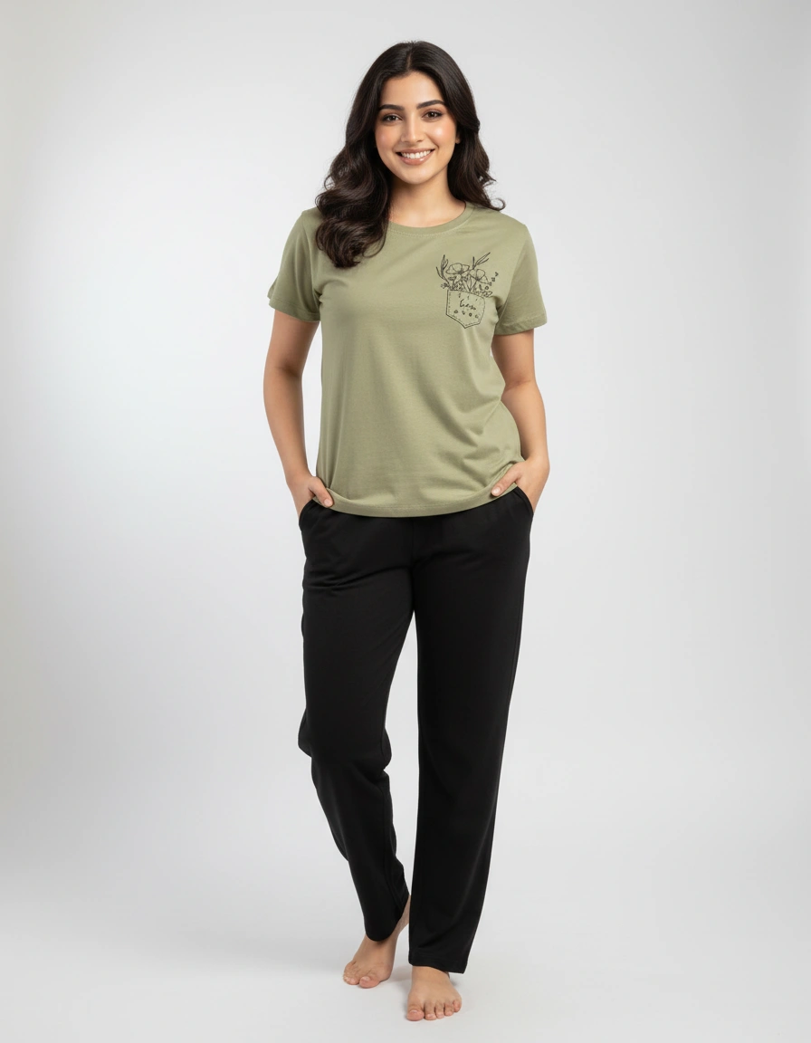 - At PrettyOdd, we believe that fashion should be a reflection of your unique personality, and our curated collection of women’s Green solid Pyjama Set is designed to help you express your individuality with flair. Whether you’re looking for the perfect casual tee for a laid-back weekend or a statement piece to elevate your everyday look, PrettyOdd has you covered. Green solid Pyjama Set
