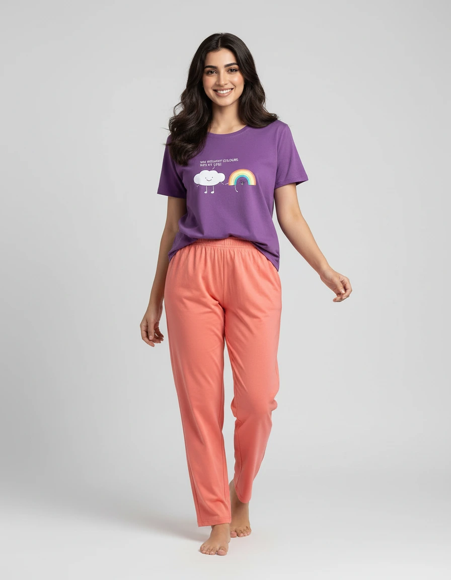 At PrettyOdd, we believe that fashion should be a reflection of your unique personality, and our curated collection of women’s violet Solid Pyjama Set is designed to help you express your individuality with flair. Whether you’re looking for the perfect casual tee for a laid-back weekend or a statement piece to elevate your everyday look, PrettyOdd has you covered. violet Solid Pyjama Set